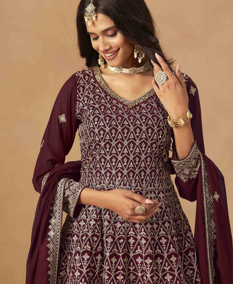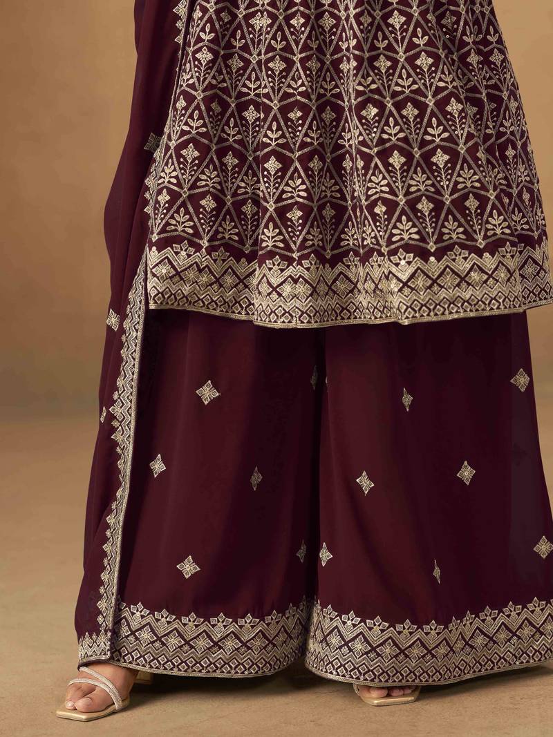 | Product Name | Maroon Faux Georgette Heavy Thread Embroidery With Sequins Work Palazzo Suit | |