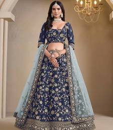 | Product Description | Lehenga Fabric: Art Silk, Lehenga Color Navy Blue, Choli Fabric: Art Silk, Choli Color: Navy Blue, Dupatta Fabric: Net, Dupatta Color: Light Blue, Inner Fabric: Crepe, Work: Heavy Thread Embroidery With Sequins Work, Remark: Lehenga Choli |