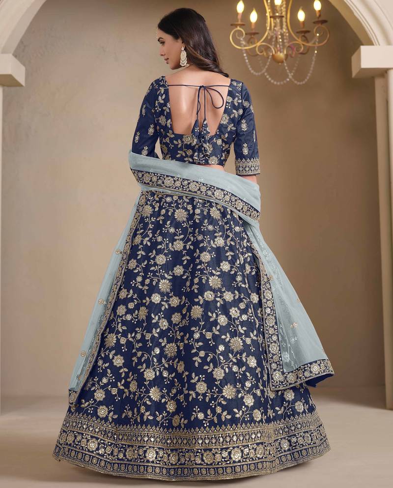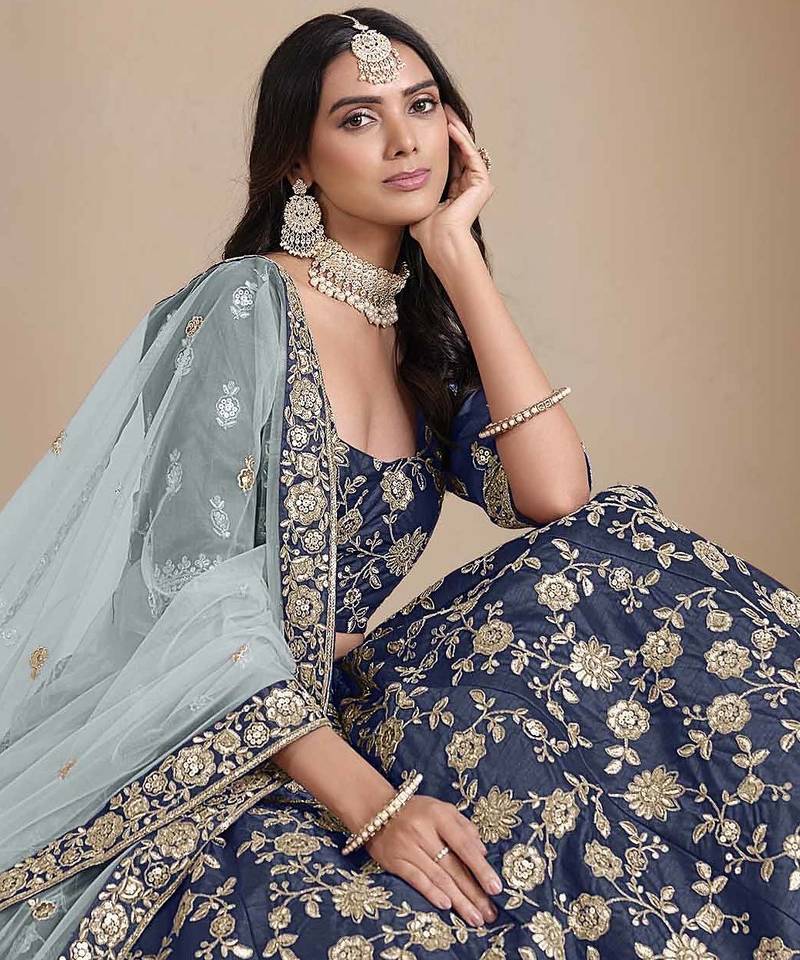 | Product Name | Navy Blue Art Silk Heavy Thread Embroidery With Sequins Work Lehenga Choli Set With Blouse And Duppata | |