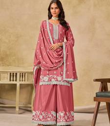 Pink chinon heavy thread embroidery work palazzo suit semi stitched