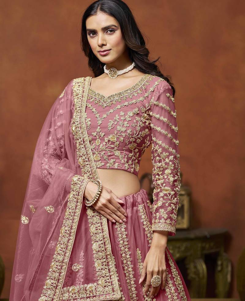 | Product Name | Pink Net Heavy Thread Embroidery With Sequins Work Lehenga Choli Set With Dupatta | |