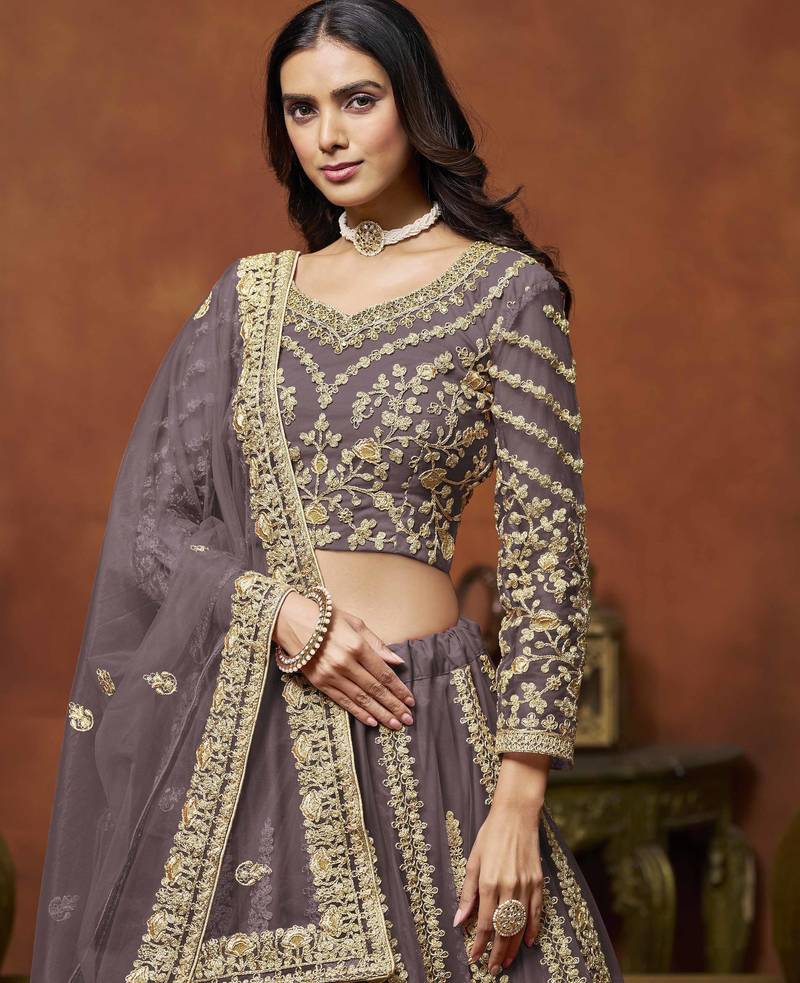 | Product Name | Purple Net Heavy Thread Embroidery With Sequins Work Lehenga Choli Set With Dupatta | |