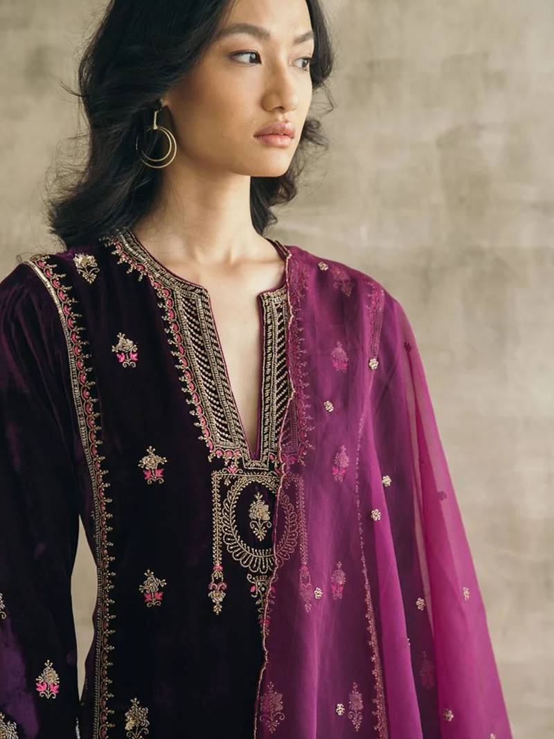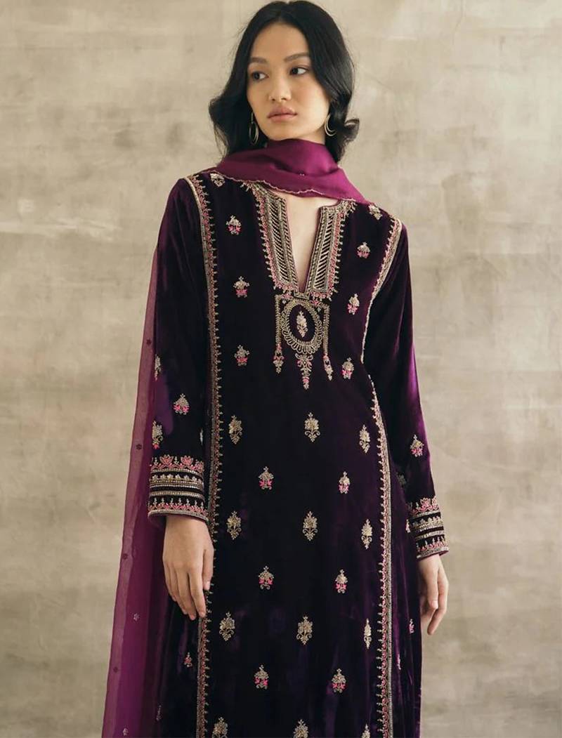 | Product Name | Purple Velvet Heavy Thread Embroidery Work Kurta Pant Set | |