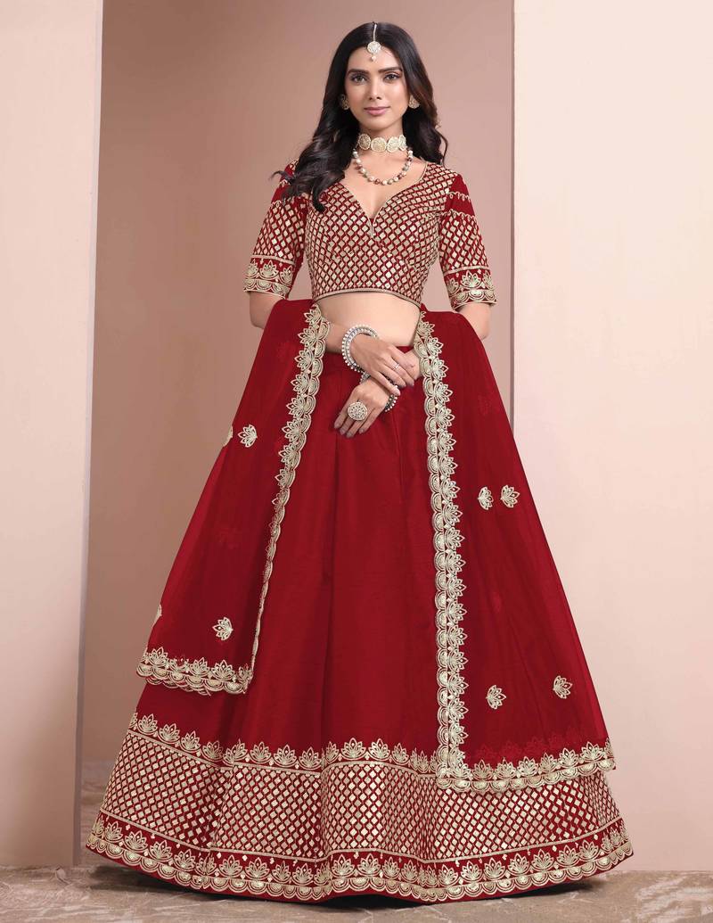 | Product Name | Red Art Silk Heavy Thread Embroidery With Sequins Work Lehenga Choli Set With Blouse And Dupatta | |