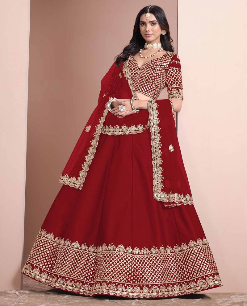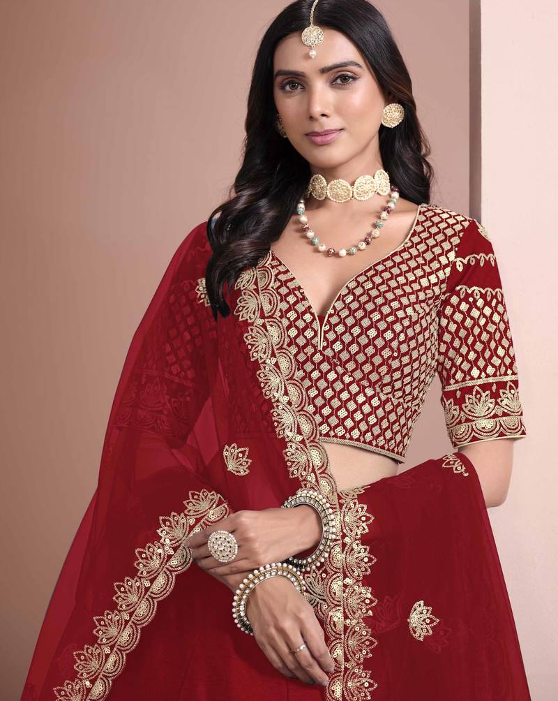 Red art silk heavy thread embroidery with sequins work lehenga choli set with blouse and dupatta