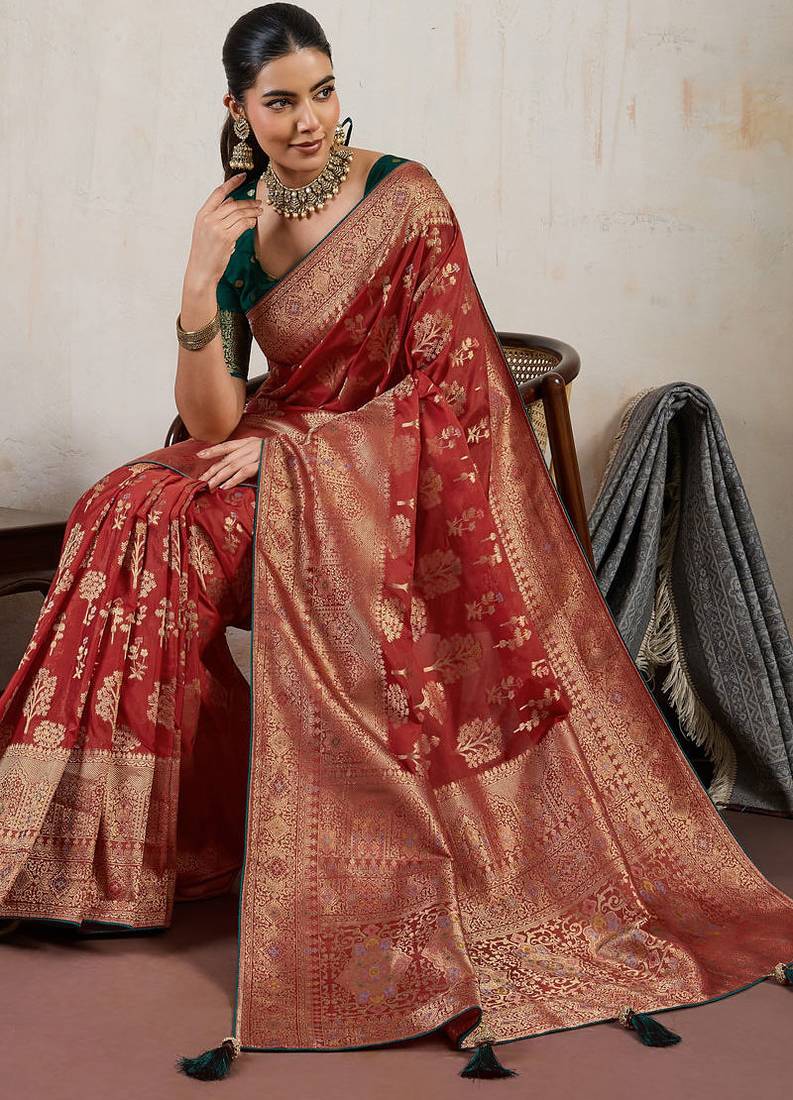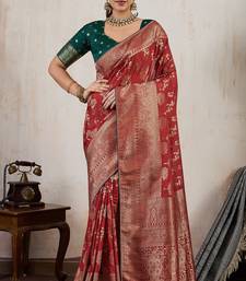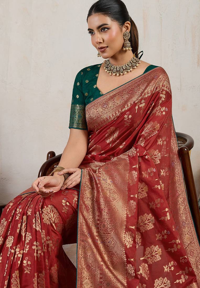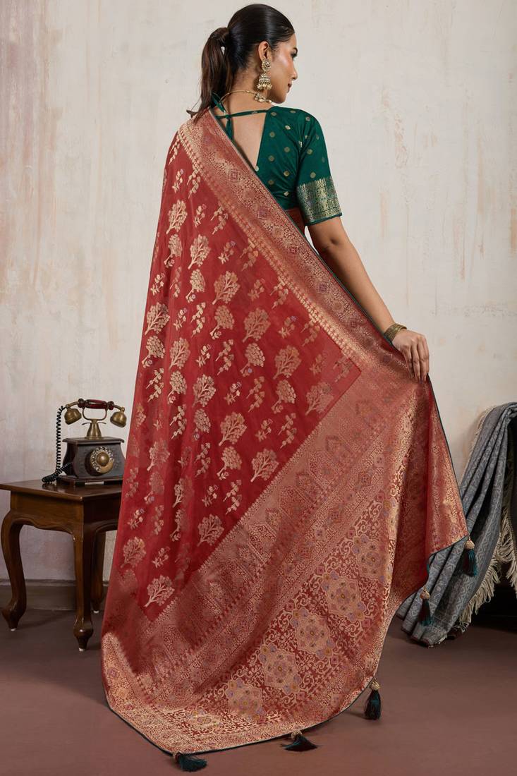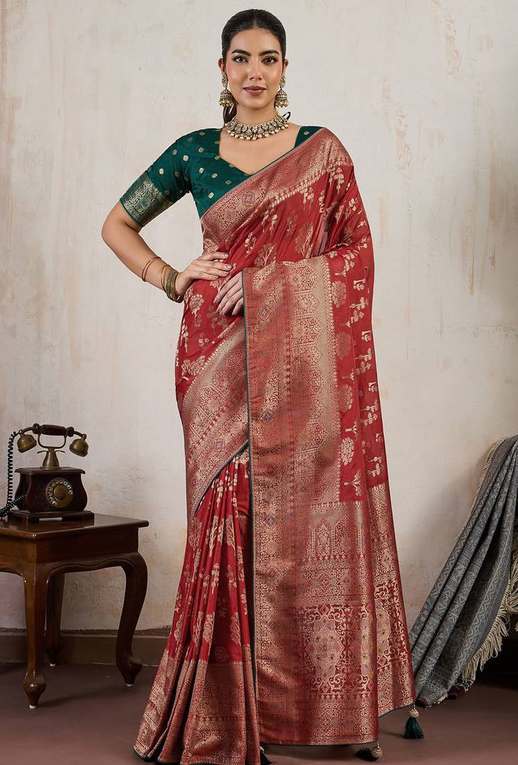 Red makhmal soft silk blend meenakari zari shades woven saree with blouse