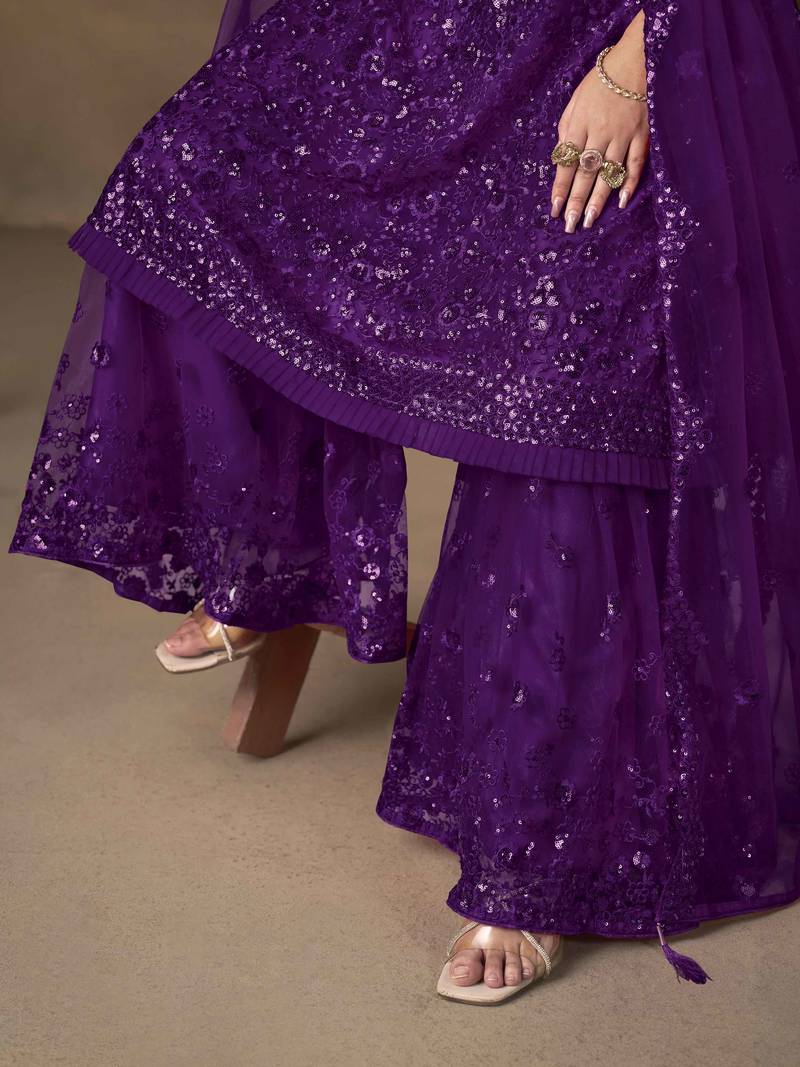 | Product Name | Violet Net Heavy Thread Embroidery With Sequins Work Sharara Suit | |