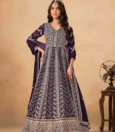Wine faux georgette heavy thread embroidery with sequins work salwar kameez semi stitched