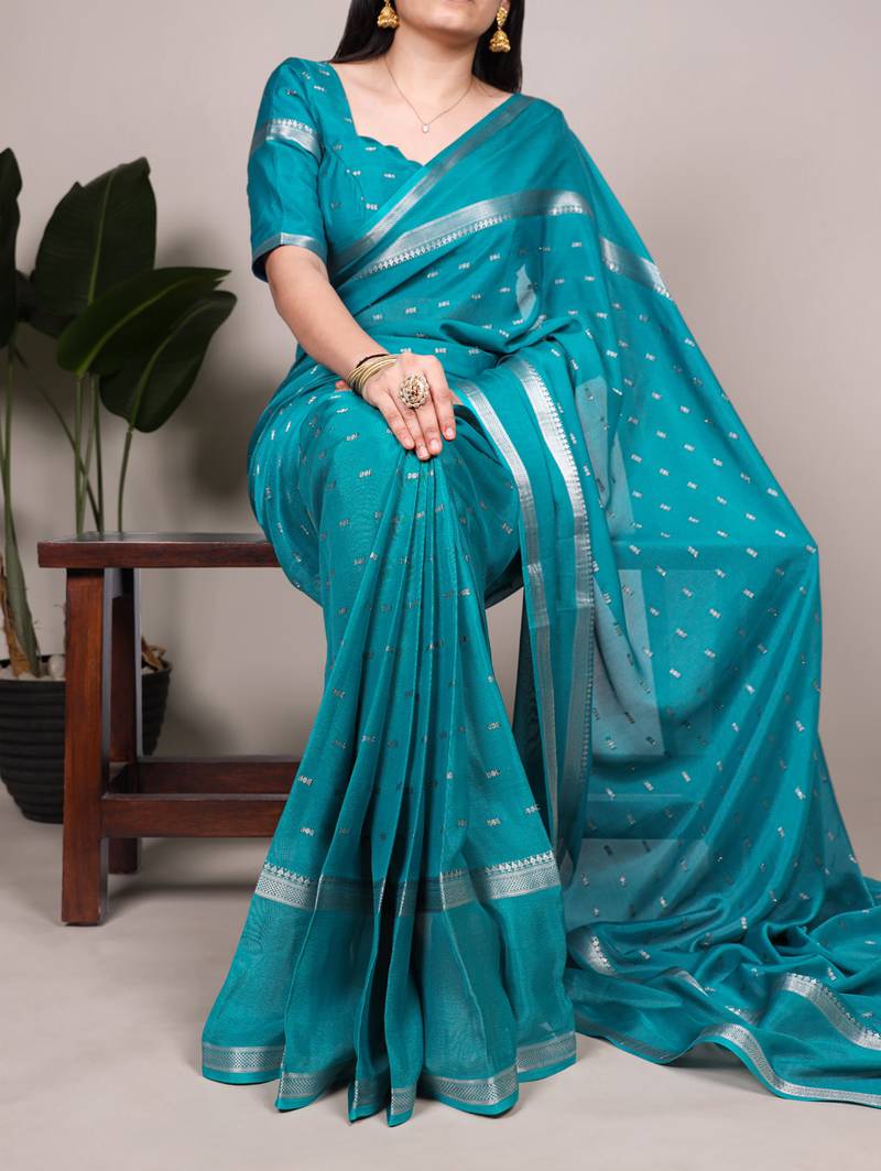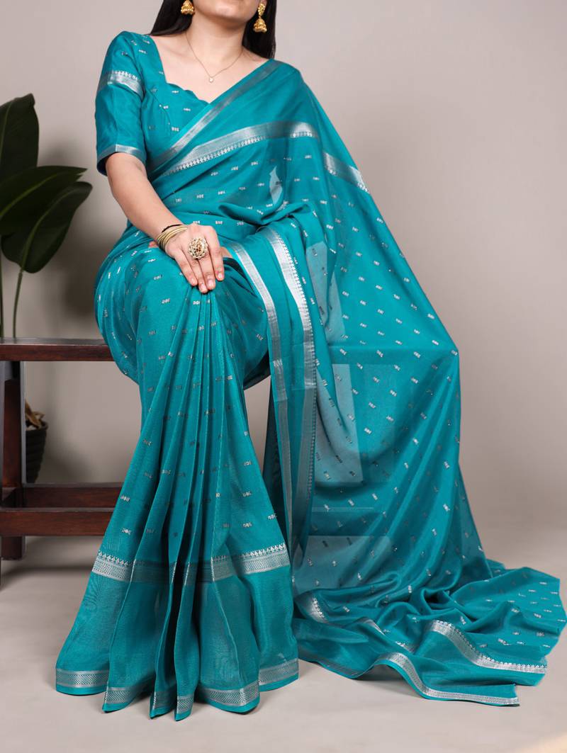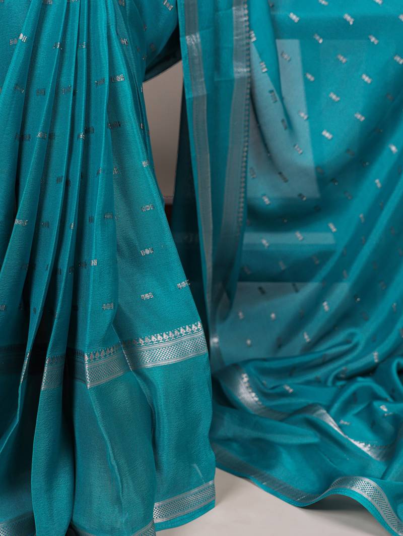 | • | Saree | : | Color- Teal / Fabric- Crepe |