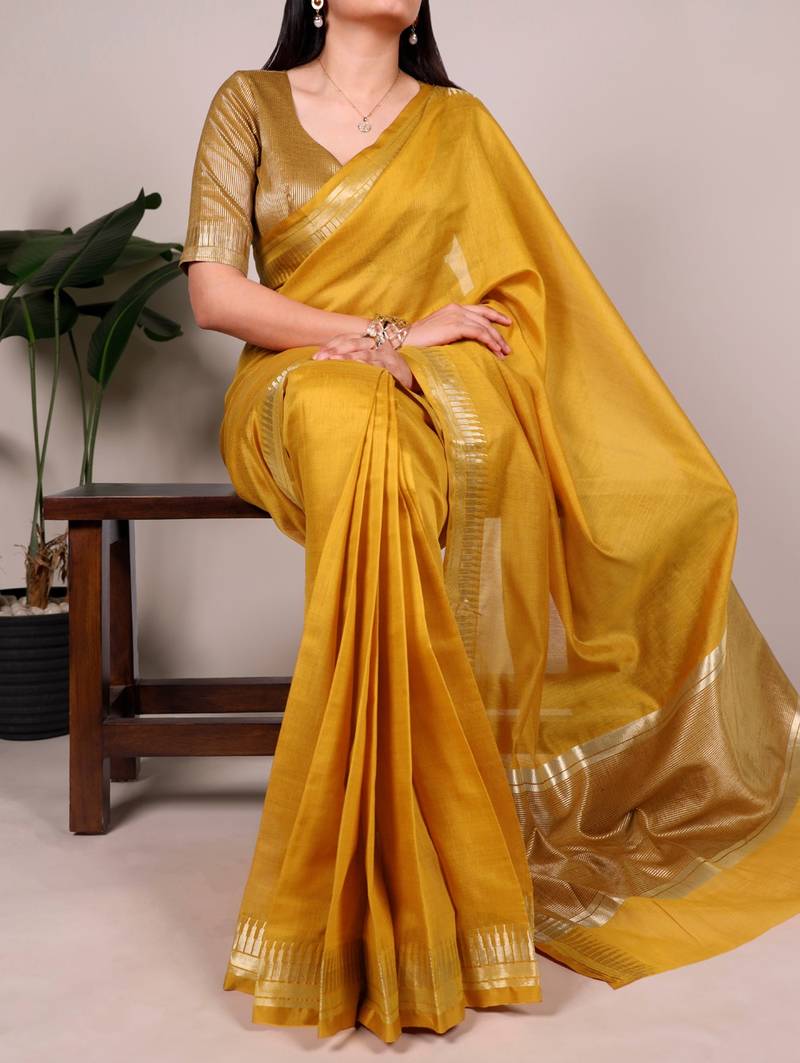 | • | Saree | : | Color- Mustard / Fabric- Cotton Silk |