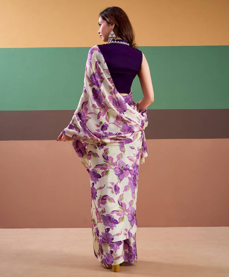 Graceful satin silk saree with floral prints