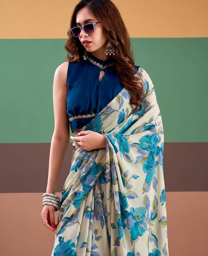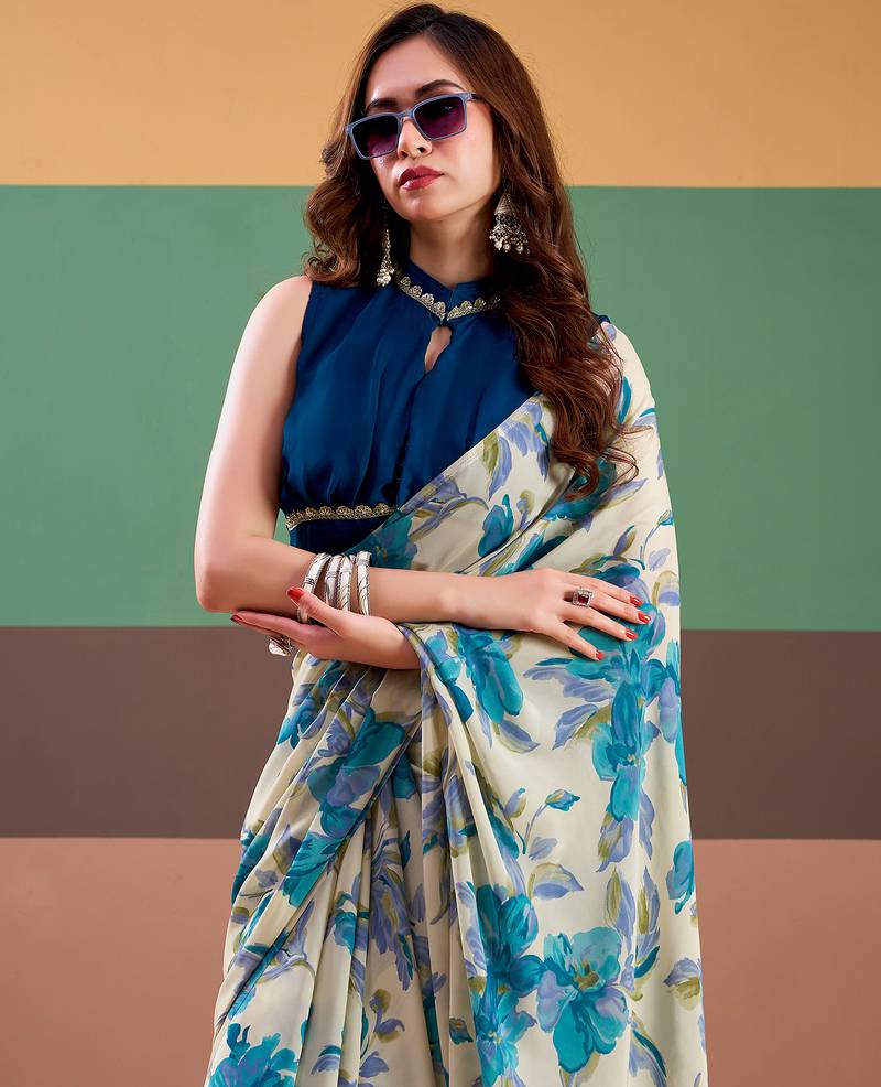 Graceful satin silk saree with floral prints