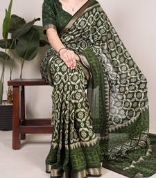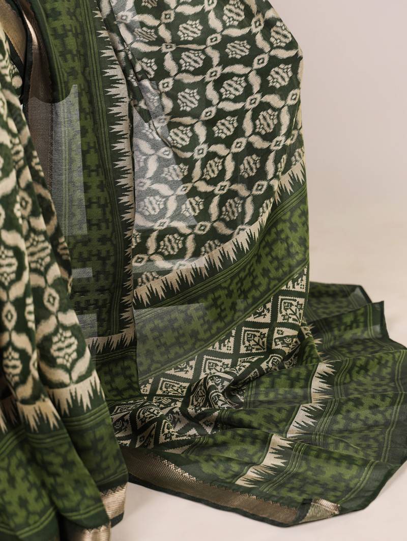Polyester viscose chanderi ikat print saree with rich zari weaving border