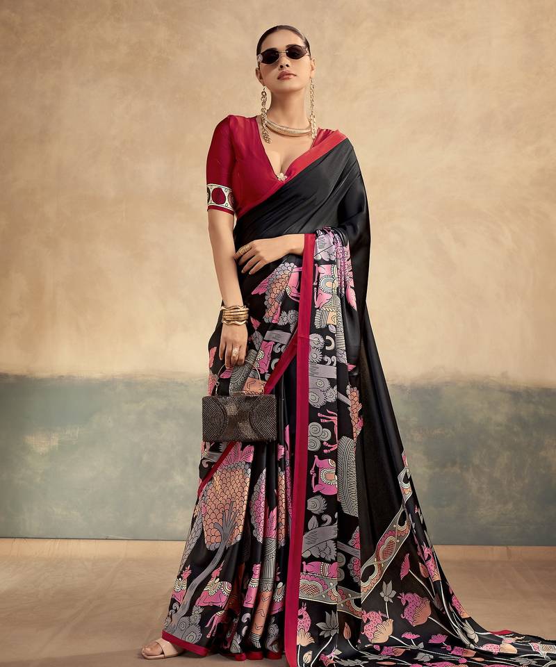 | Product Name | Red Printed Satin Silk Saree With Unstitched Blouse | |