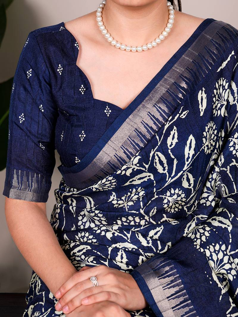 | Product Name | Slub Silk Saree With Floral Print & Silver Zari | |