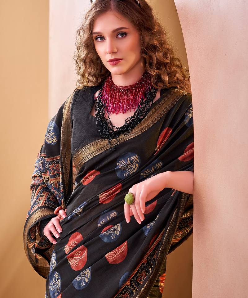 | • | Saree | : | Color- Black / Fabric- Chanderi |