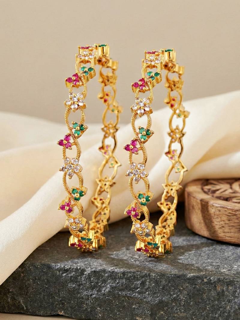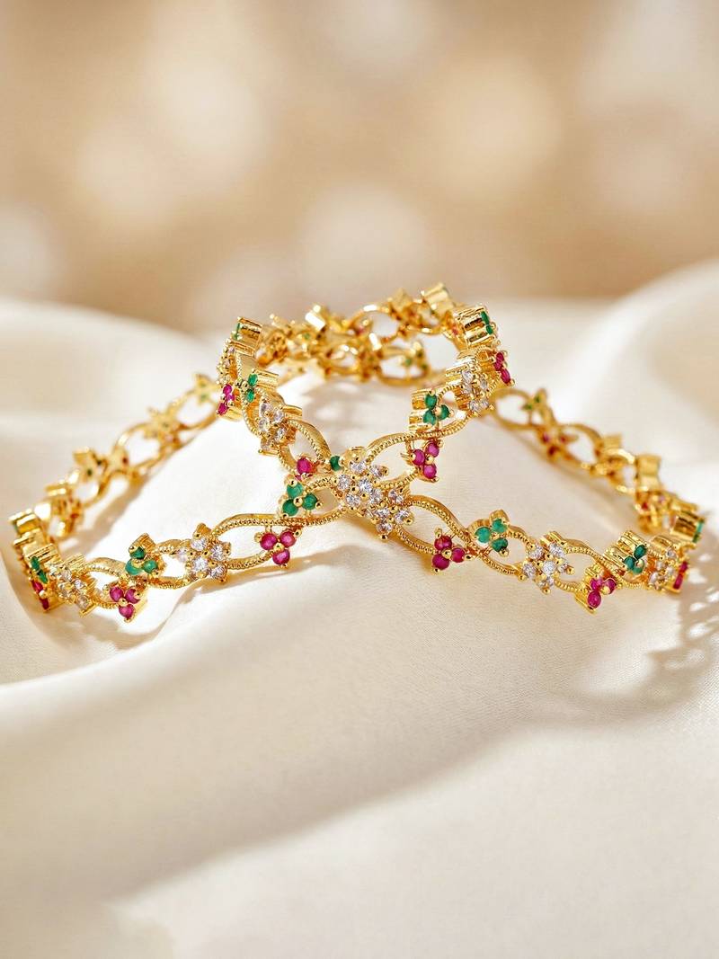 | Product Description | Lucky Jewellery Gold Plated Laxmi Ad Pink Green Bangle (1262 C1 Bg 2221 2) |