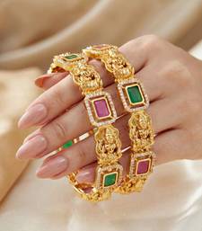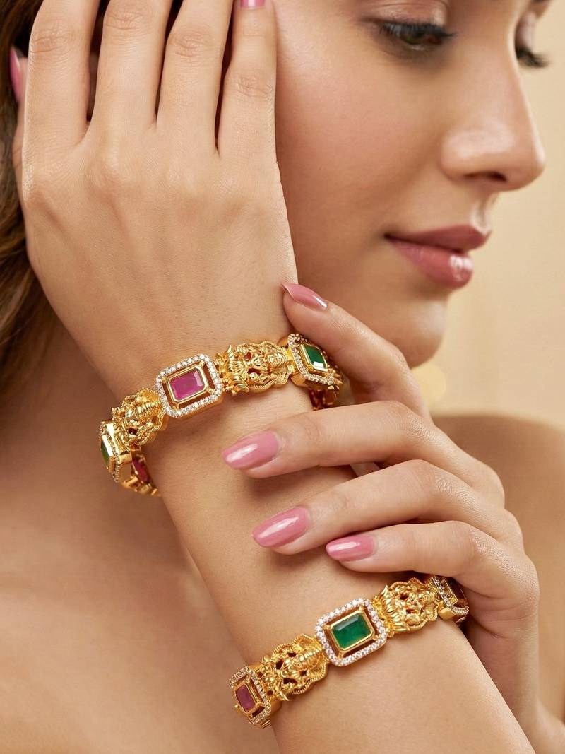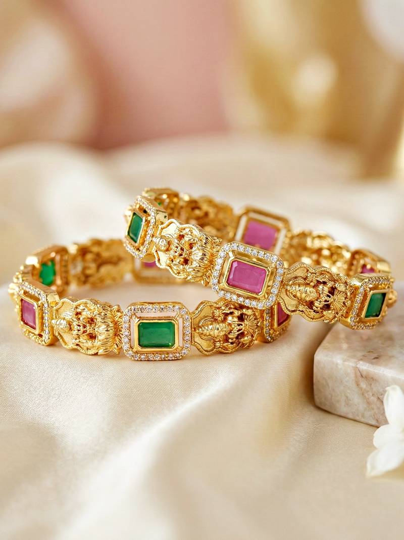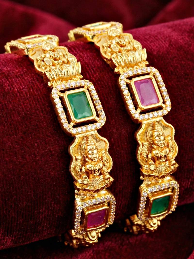 | Product Name | Gold Laxmi Ji Ad Temple Bangle Pink Green Stone | |