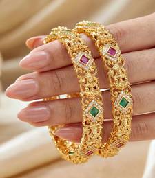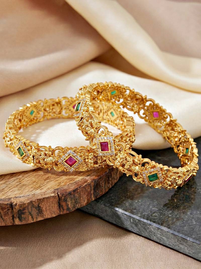 | Product Description | Lucky Jewellery Gold Plated Laxmi Temple Ad Green Stone Bangle (783 C1 Bg 2203 2) |