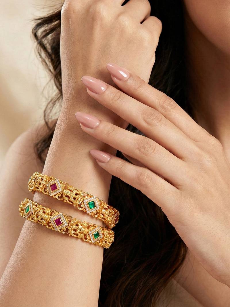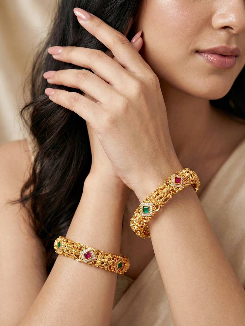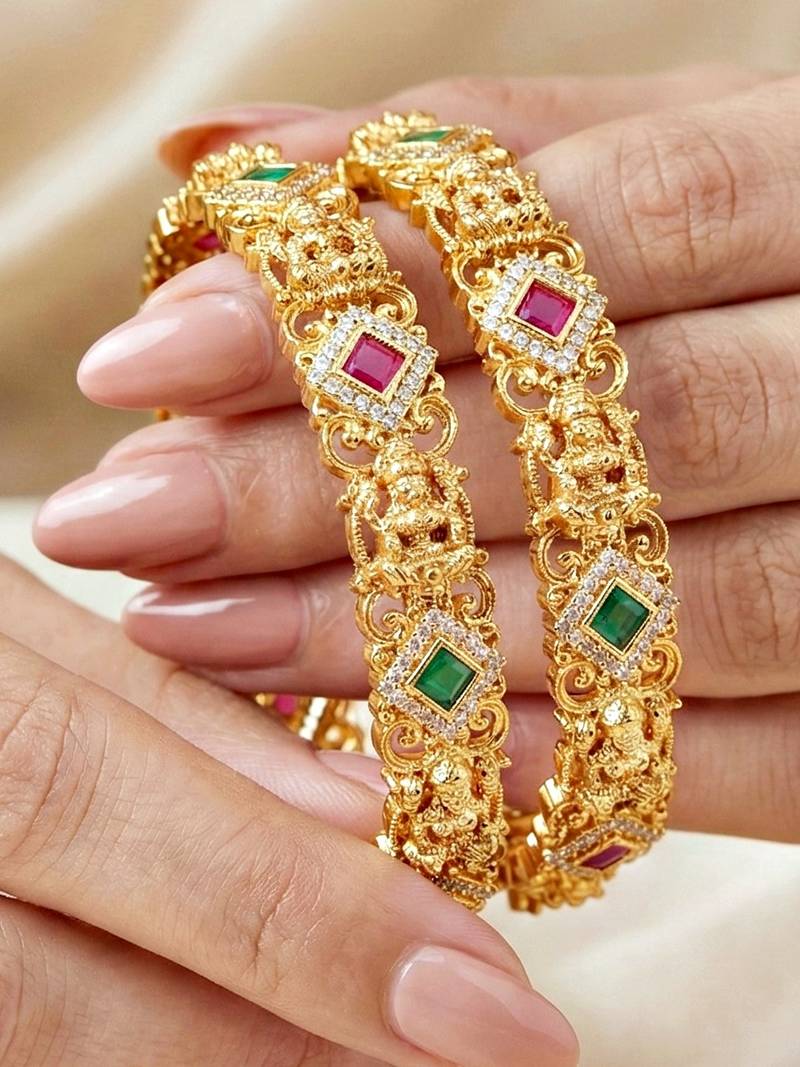 | Product Name | Gold Laxmi Temple Ad Bangle Green Stone | |