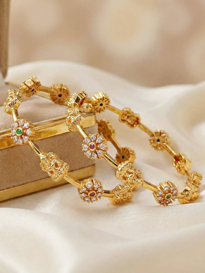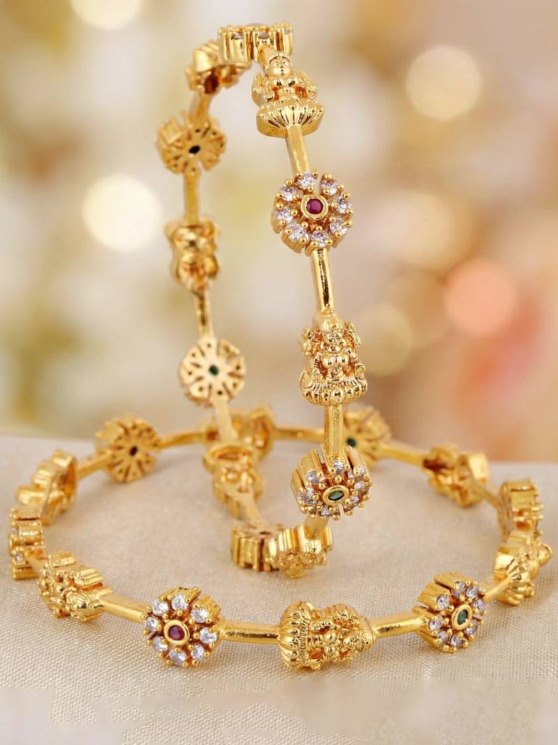 | Product Description | Lucky Jewellery Gold Plated Laxmi Temple Ad Pink Green Bangle (1174 C1 Bg 2215 2) |