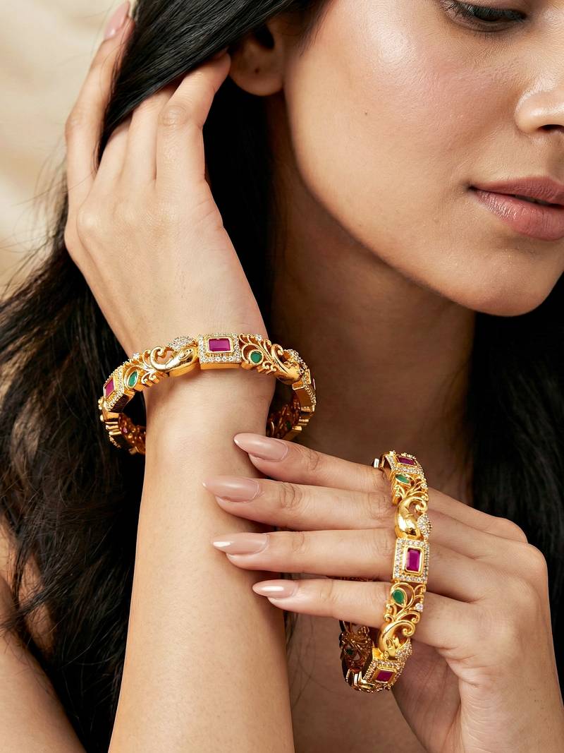 | Product Name | Gold Laxmi Temple Ad Bangle Pink Green | |