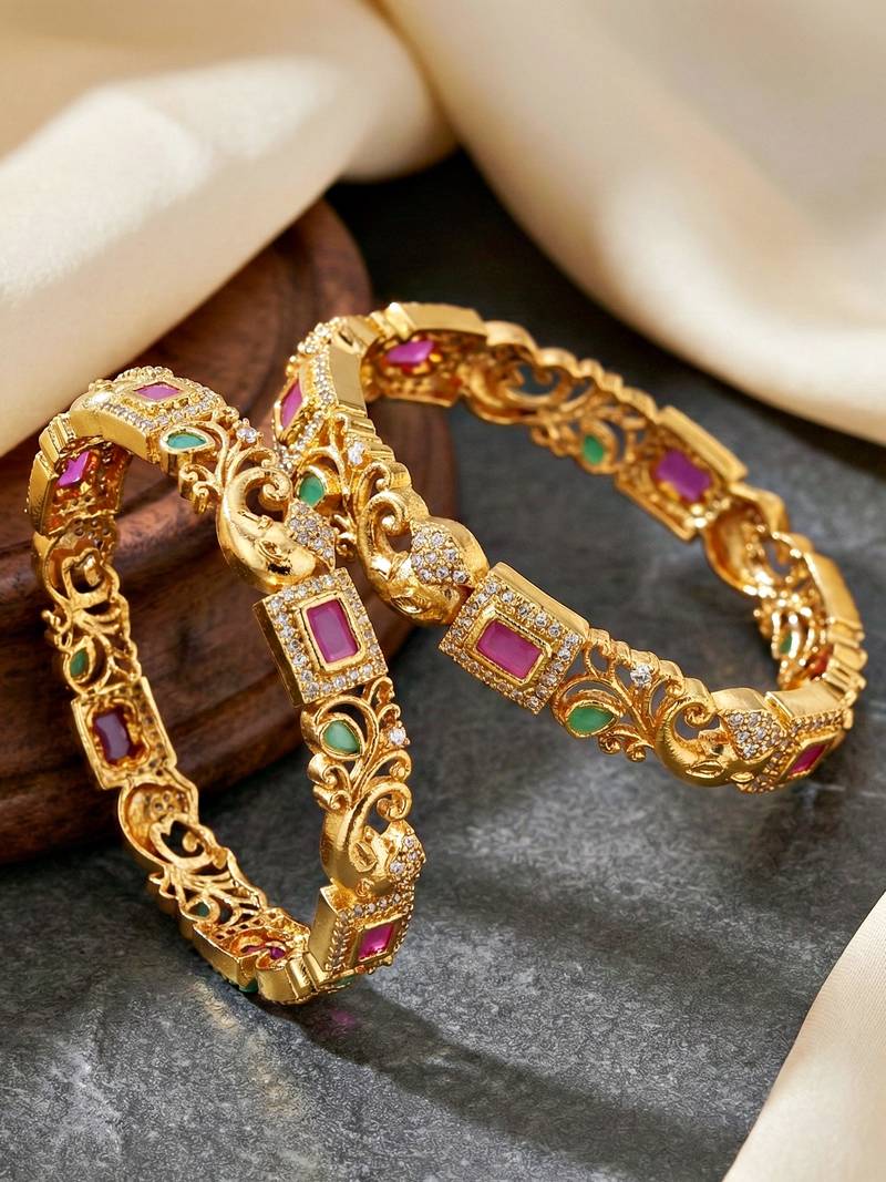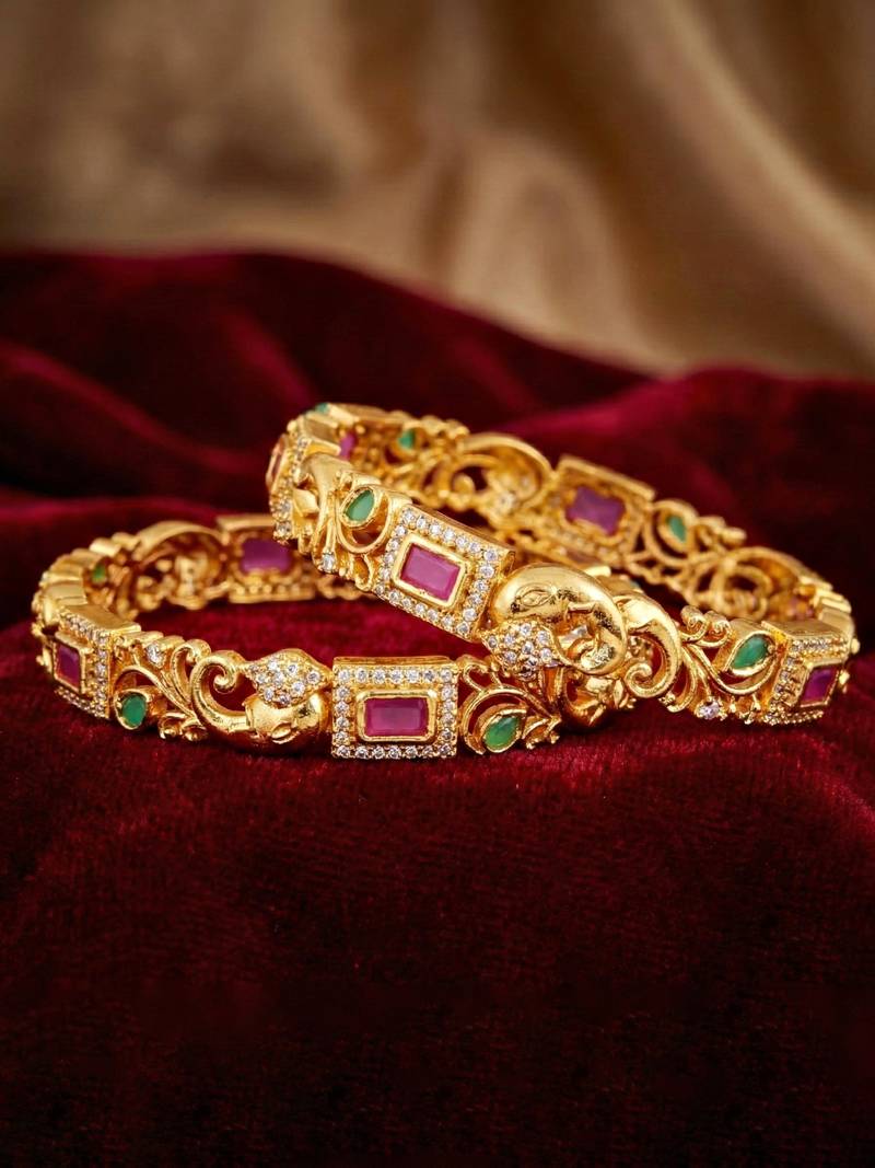 | Product Description | Lucky Jewellery Gold Plated Laxmi Temple Ad Pink Green Bangle (837 C1 Bg 2205 2) |