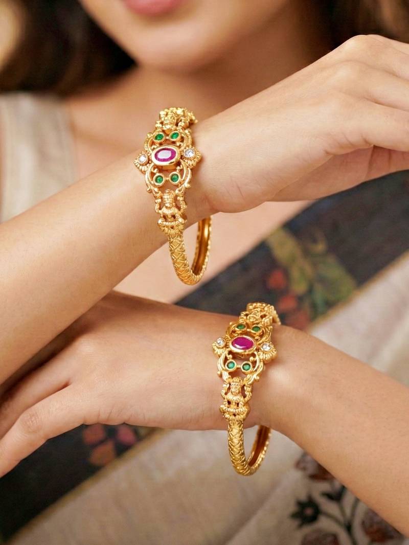| Product Name | Gold Laxmi Temple Ad Bangle Pink Green | |