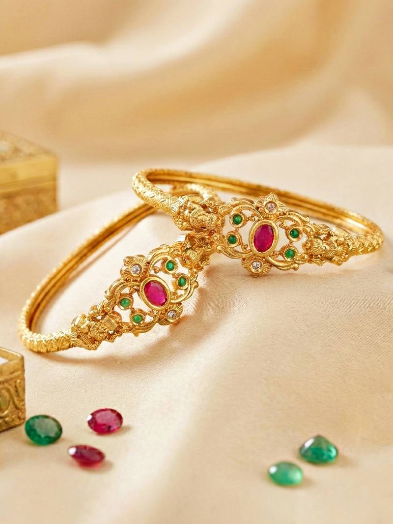 | Product Description | Lucky Jewellery Gold Plated Laxmi Temple Ad Pink Green Bangle (880 C1 Bg 2209 2) |