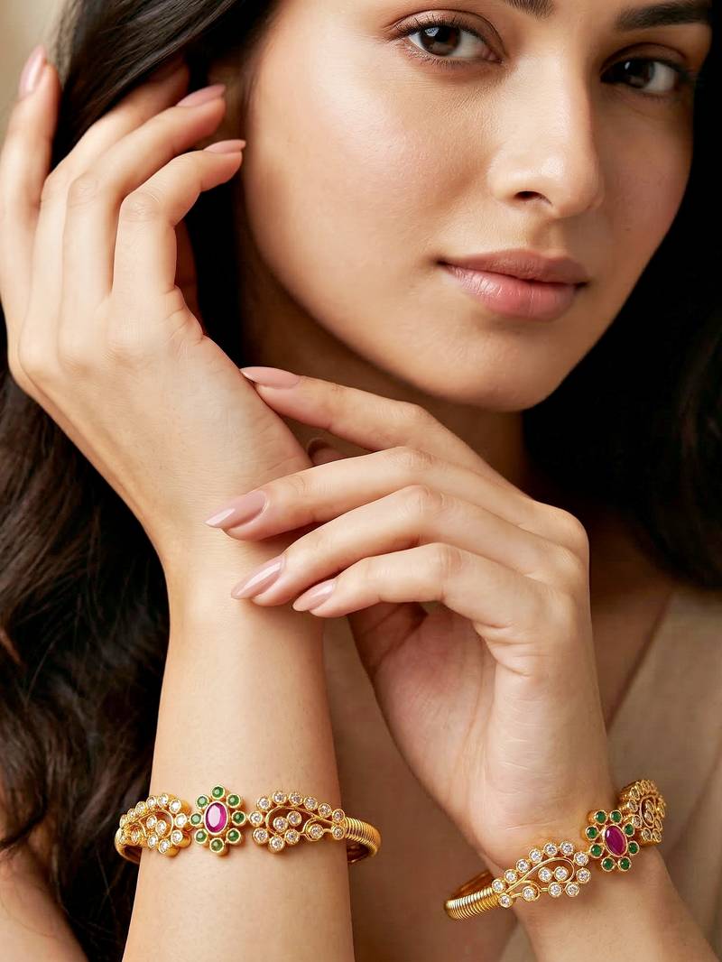 Gold temple white ad bangle elegant kada