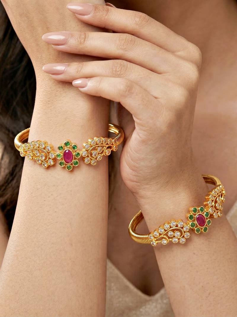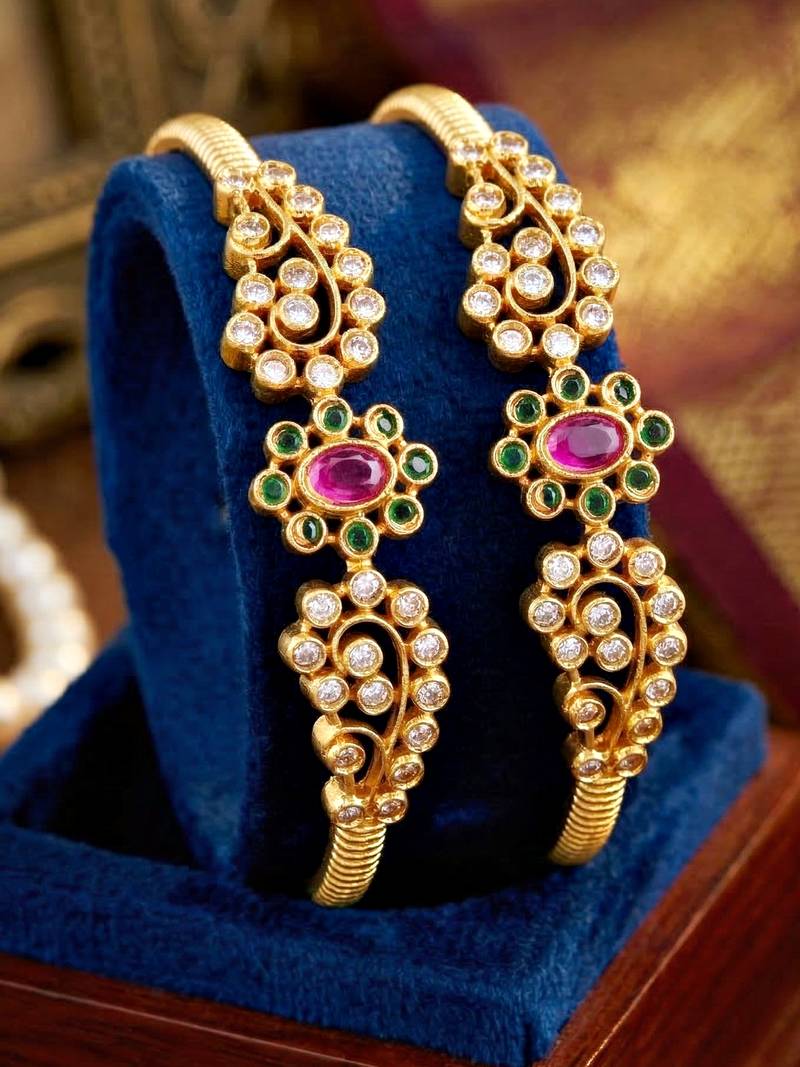 | Product Description | Lucky Jewellery Gold Plated Temple White Ad Stone Bangle (891 C1 Bg 2211 2) |
