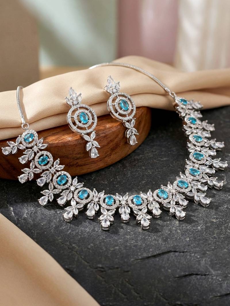 | Product Name | Silver Ferozi Ad Necklace Set With Earrings For Office Party Wedding | |