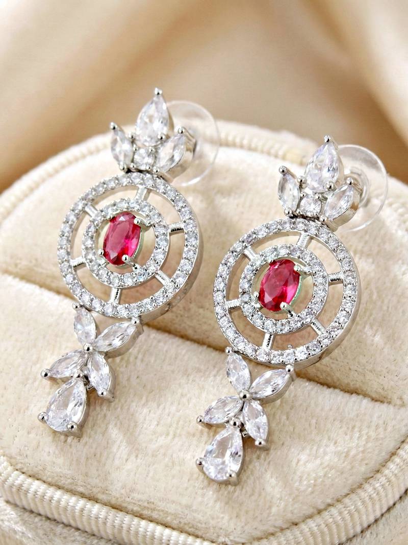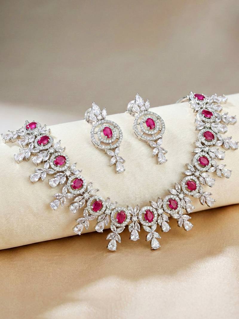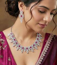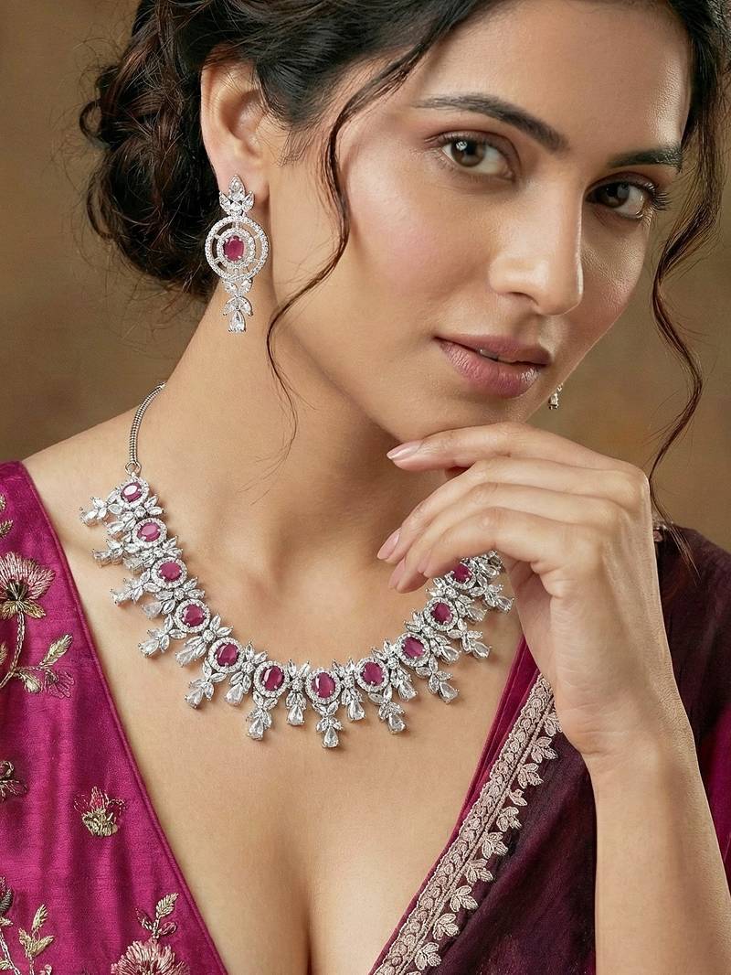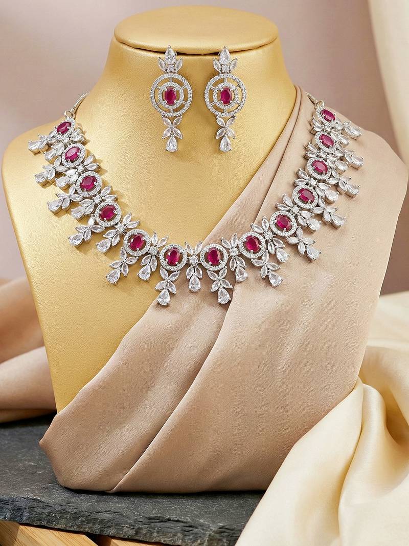 | Product Name | Silver Ruby Red Ad Necklace Set With Earrings For Office Party Wedding | |