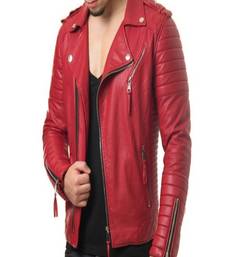 | Product Description | Men's Red Lambskin Leather Motorcycle Biker Jacket With Asymmetrical Zipper 100% Genuine,Soft Lambskin Leather