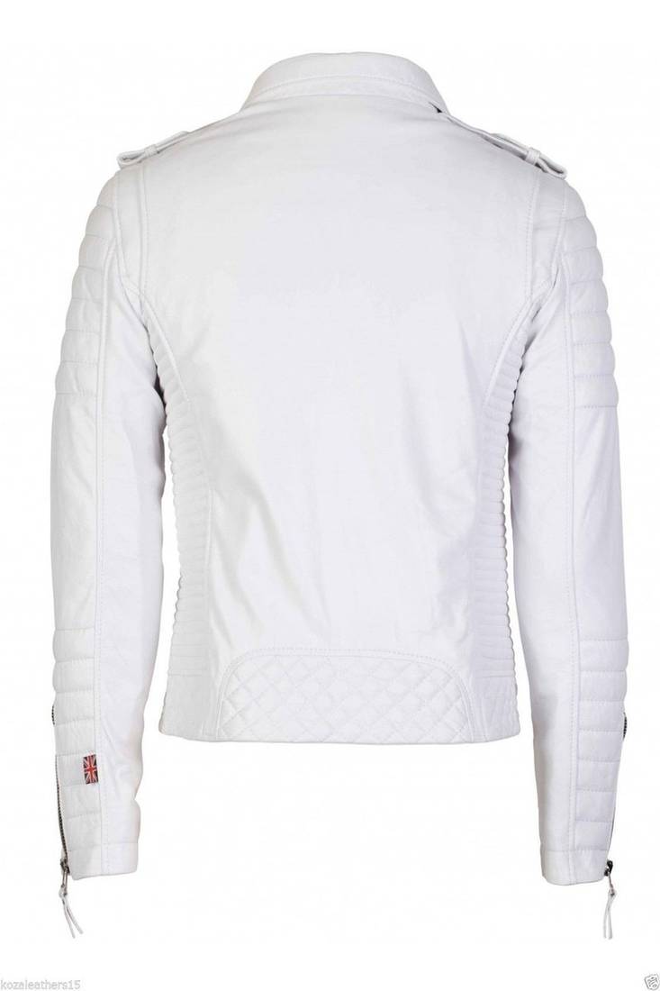 | Product Description | Men's White Lambskin Leather Motorcycle Biker Jacket With Asymmetrical Zipper 100% Genuine,Soft Lambskin Leather