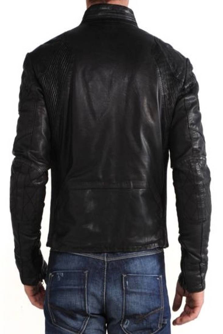 | Product Name | Men’s Black Leather Biker Jacket Quilted Shoulder Slim Fit Motorcycle Jacket | |