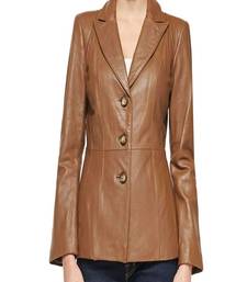 Women's lambskin brown leather formal blazer jacket
