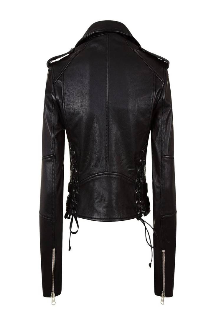 | Product Name | Women’s Black Lace Up Lamskin Leather Biker Jacket Slim Fit Moto Style | |