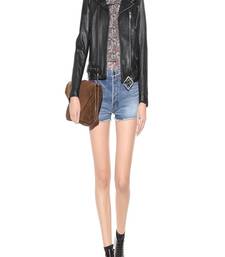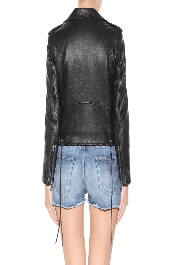 Women’s black leather biker jacket classic moto style zip closure slim fit