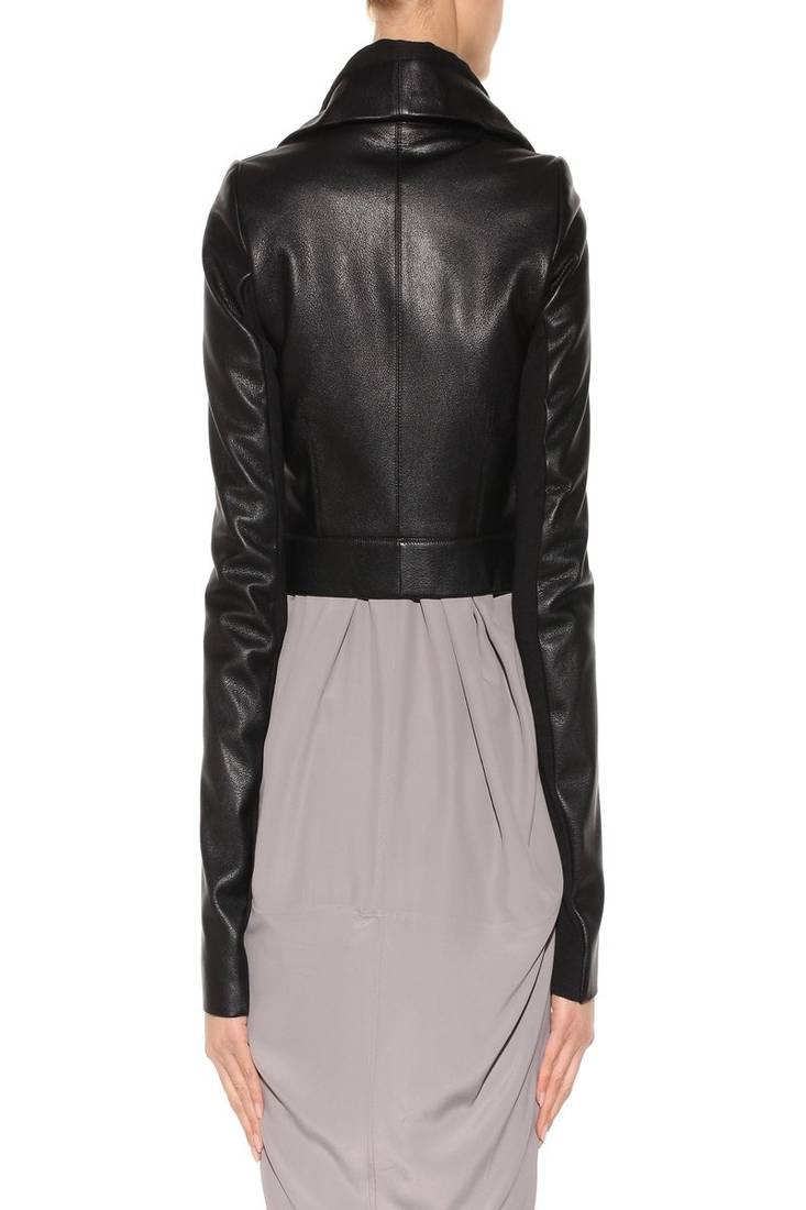 | Product Name | Women’s Black Leather Jacket Open Front Draped Collar Stylish Jacket | |