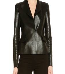 Women’s black real leather blazer jacket slim fit formal stylish coat