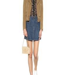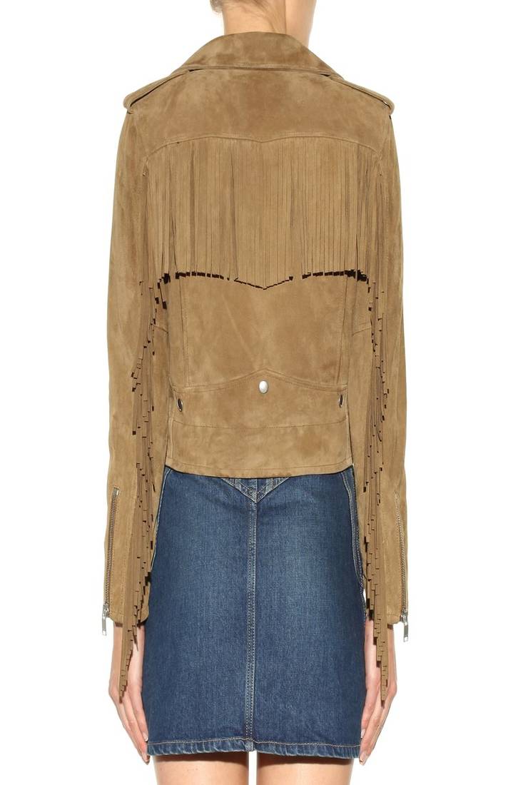 Women’s brown leather suede biker jacket slim fit, casual moto style