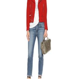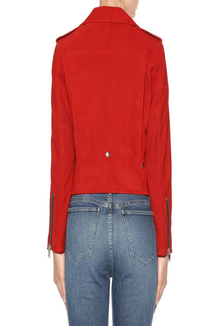 Women’s red suede leather biker jacket zip-up slim fit stylish coat