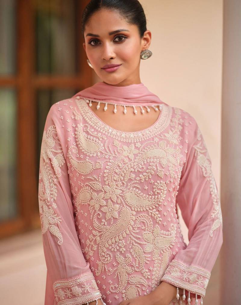 | • | Kameez | : | Color- Baby Pink / Fabric- Georgette |