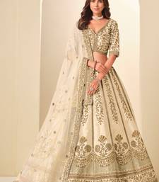 Beige art silk zari work semi stitched lehenga choli size up to 42