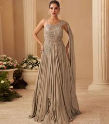 | Product Name | Beige Chinnon Silk Cape Anarkali With Golden Zari Thread Floral Embroidery And Sequin Edges Full Stitched Free Size | |