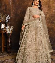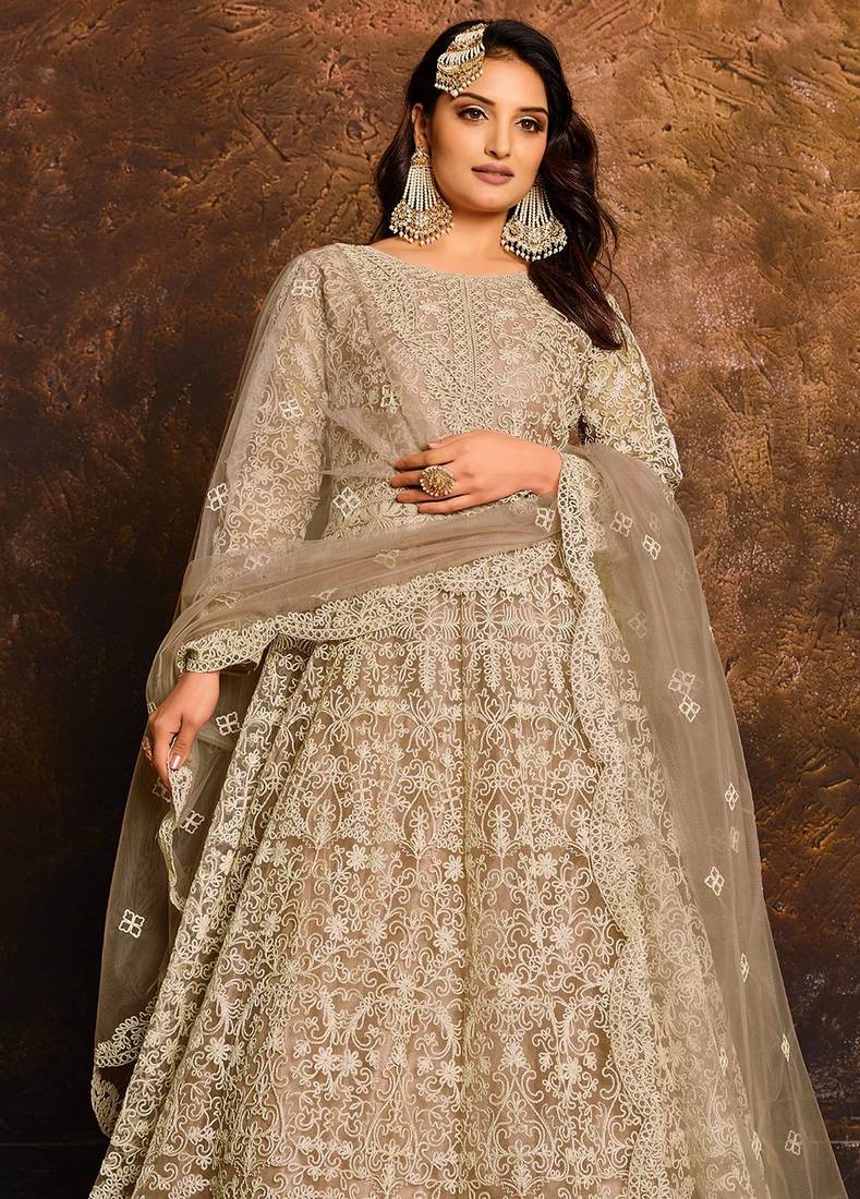 Beige net hand embroidery semi stitched salwar suits suits size up to 42