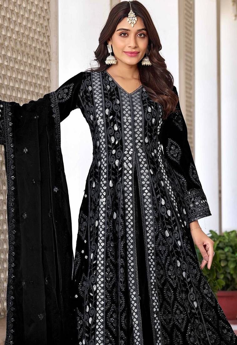 | Product Name | Black Georgette Sequins Work Semi Stitched Salwar Suits Suits Size Up To 42 | |