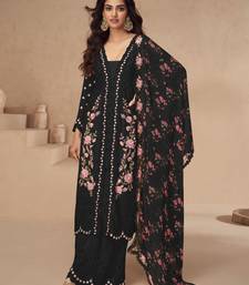 Black thread embroidery sequins & mirror work printed dupatta chinnon silk anarkali palazzo 42 stitched