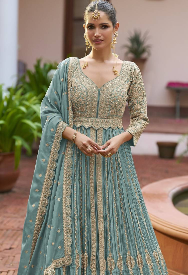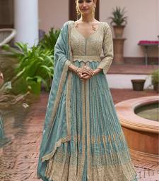 Blue chiffon sequins work semi stitched salwar suits suits size up to 42